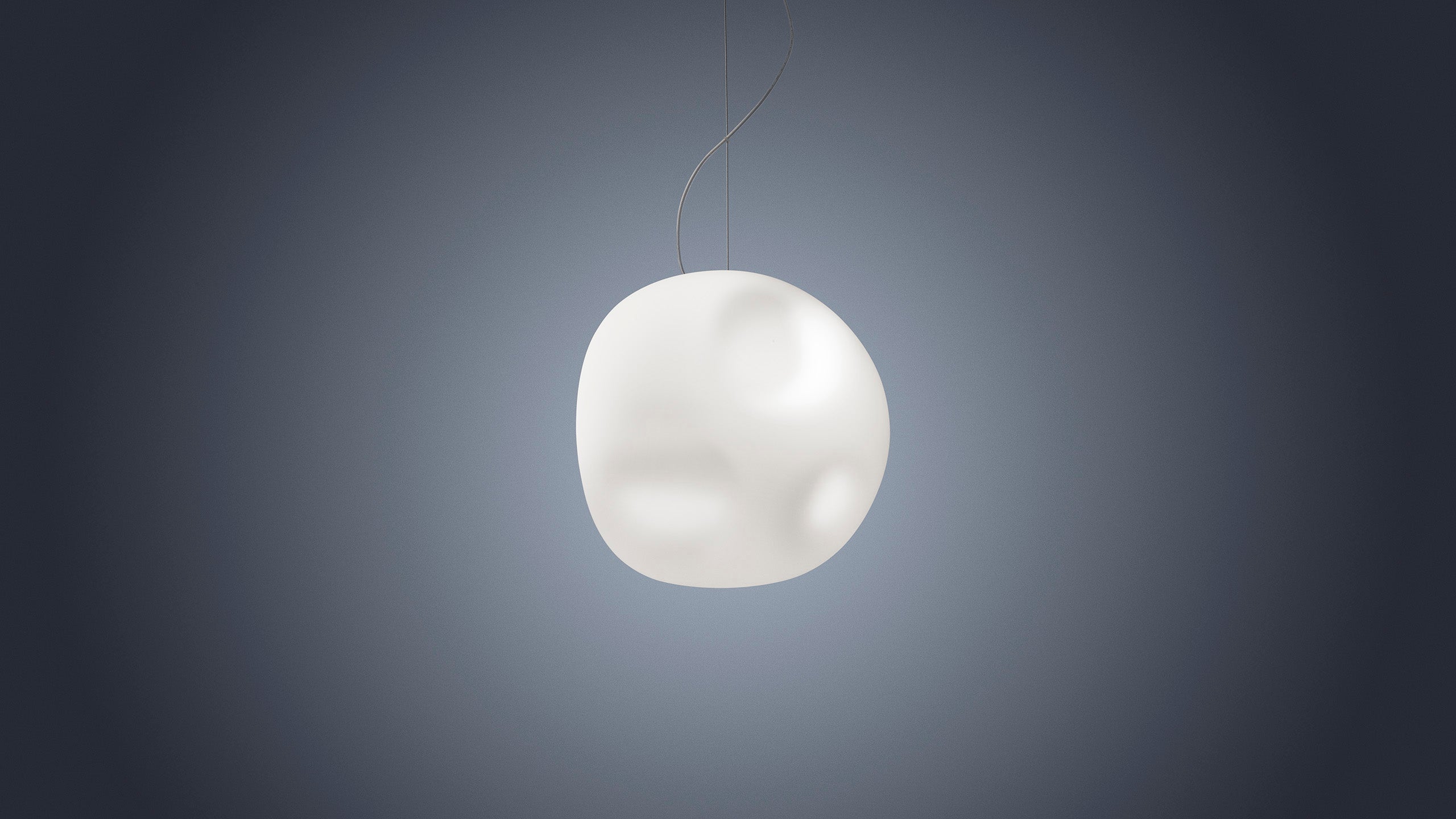 Inspired by a meteorite, Hoba is an asymmetrical table lamp in frosted blown glass that diffuses a warm and soft luminosity in the environment. It is manufactured using an original open mold production process that allows to obtain similar but always variable shapes, unique but repeatable.