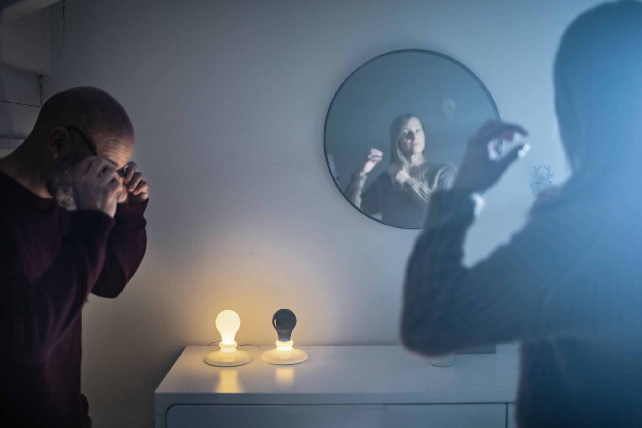 The White Light table lamp represents the icon of the bulb with the typical bulb shape, while the Black Light design lamp instead with the inversion of the parts, that is, the lamp holder emanates light while the bulb remains dark. An accessible temptation, part of an author's collection, in an exclusive customized packaging.
