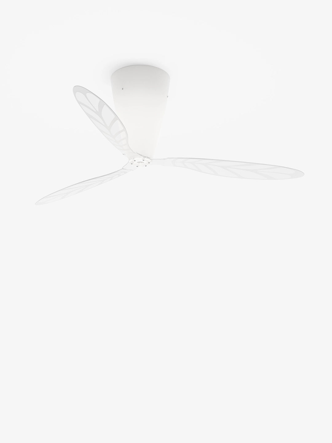 Light in weight, essential in design, Blow moves air at variable speeds with a minimum of noise. The rotation of the colored or transparent methacrylate blades does not interfere with the emission of white light in the room.