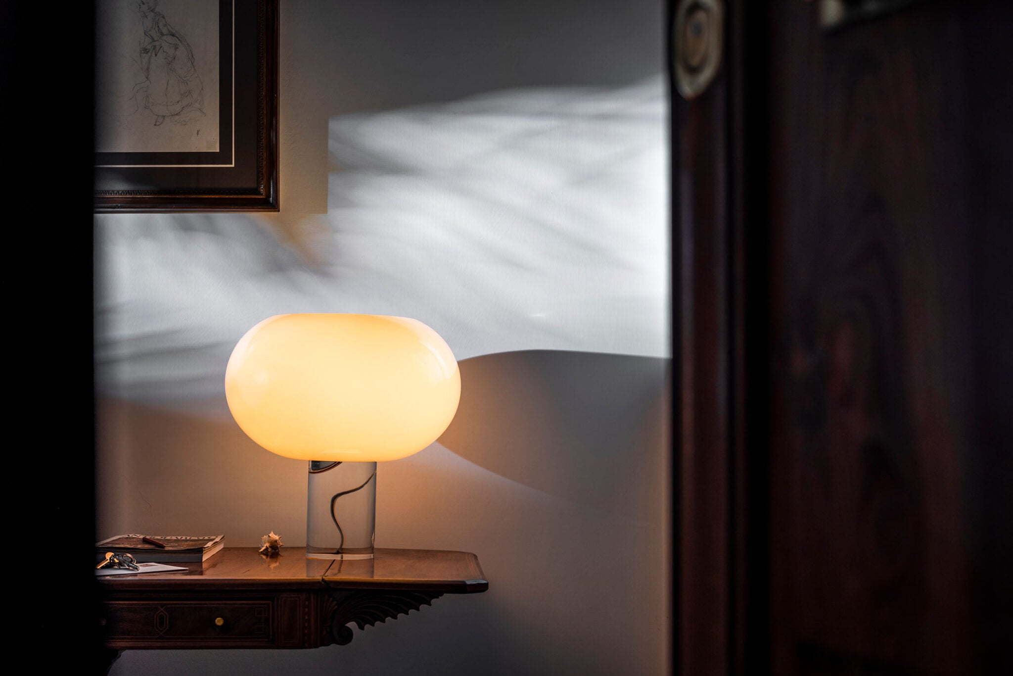 Sophisticated wealth and valuable materials: in Buds, blown glass plays the starring role, combined with a transparent base that emphasises its pure shapes. Buds 2 is the largest in the family, with a generously sized glass in grey or warm white.
