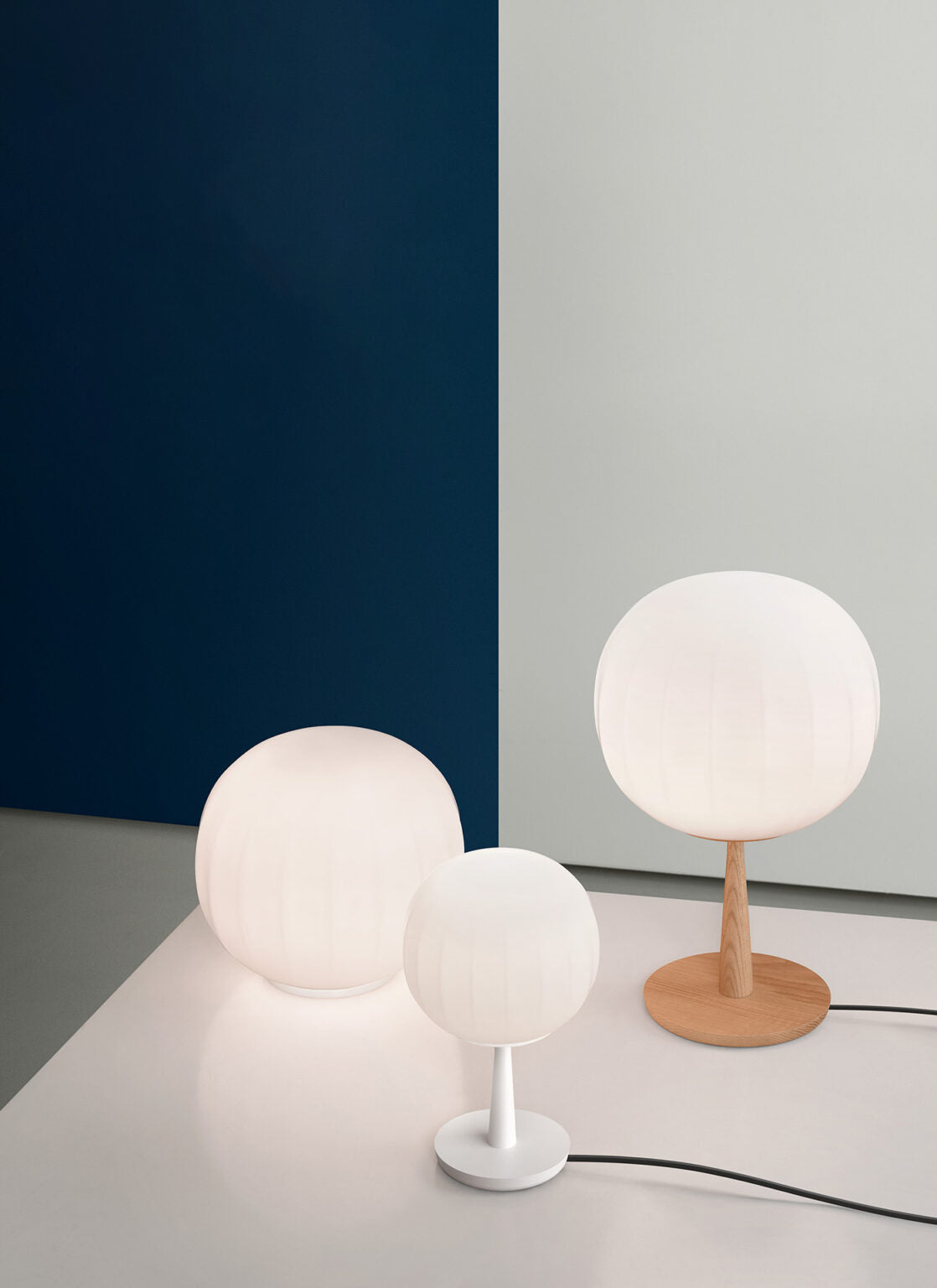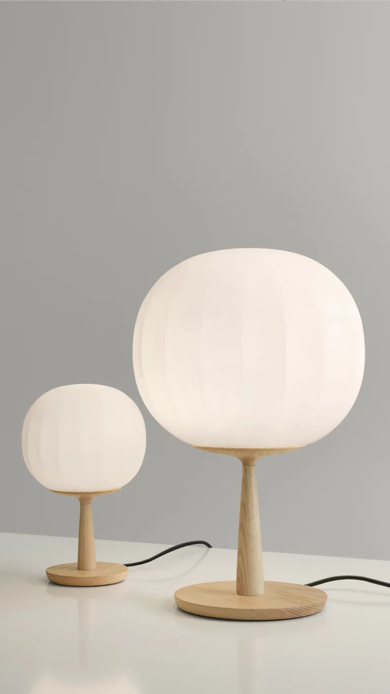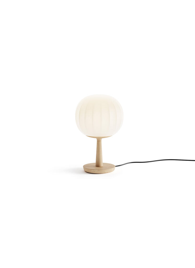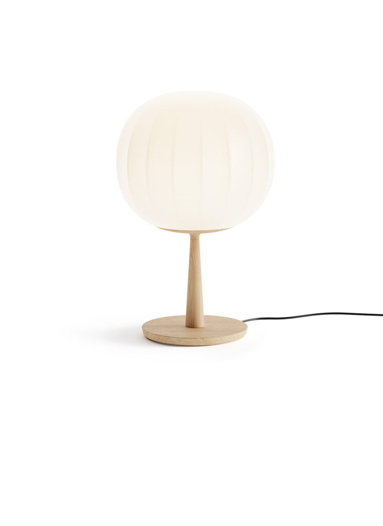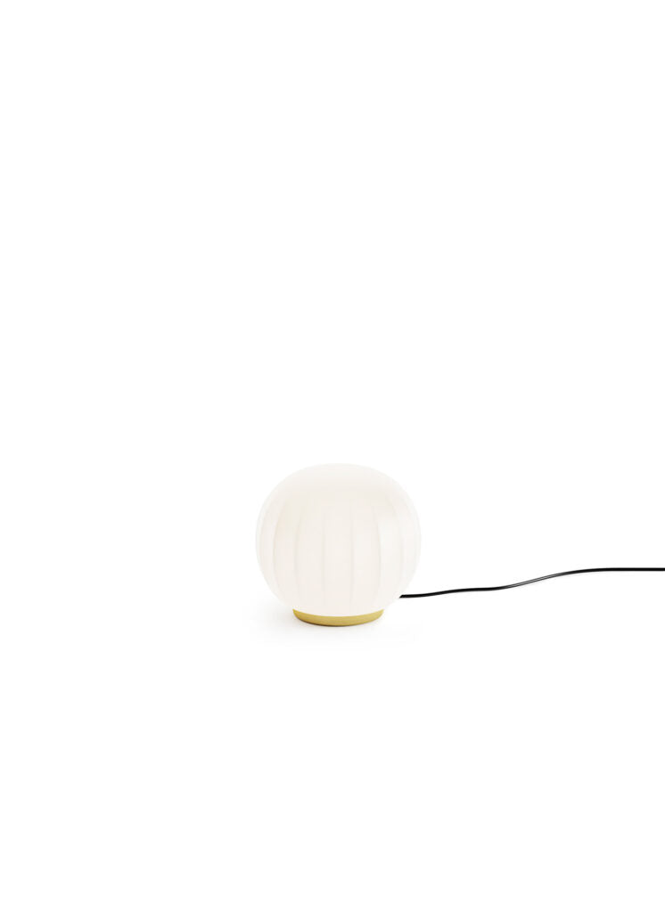 Lita is a decorative lamps, the result of a delicate design process that mixes imagery, signs, geometric textures and natural materials. The diffuser in opaline blown glass – whose surface is scanned by the repetition of slight vertical cusps that vanish at the extremities – is combined with a wooden structure, making Lita a product with a forceful material character.