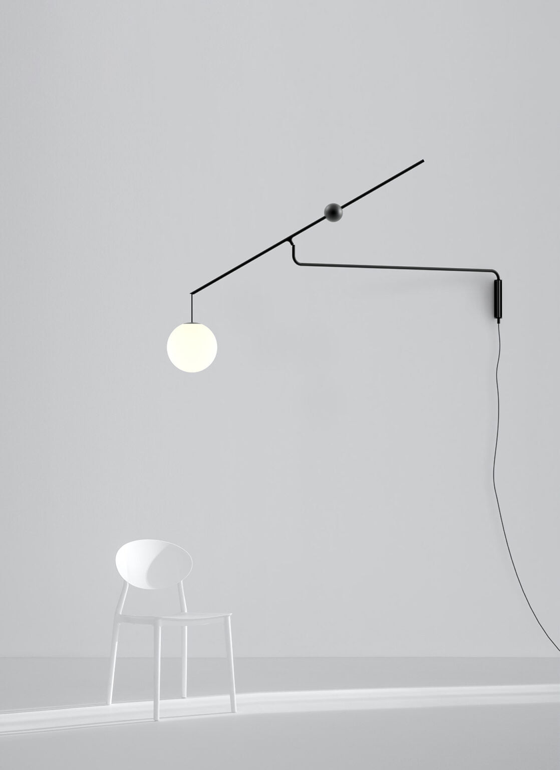 The wall version is equipped with two articuleted arms wich, exploting the counterweight movement, give greta flexibility in the diffuser placement.